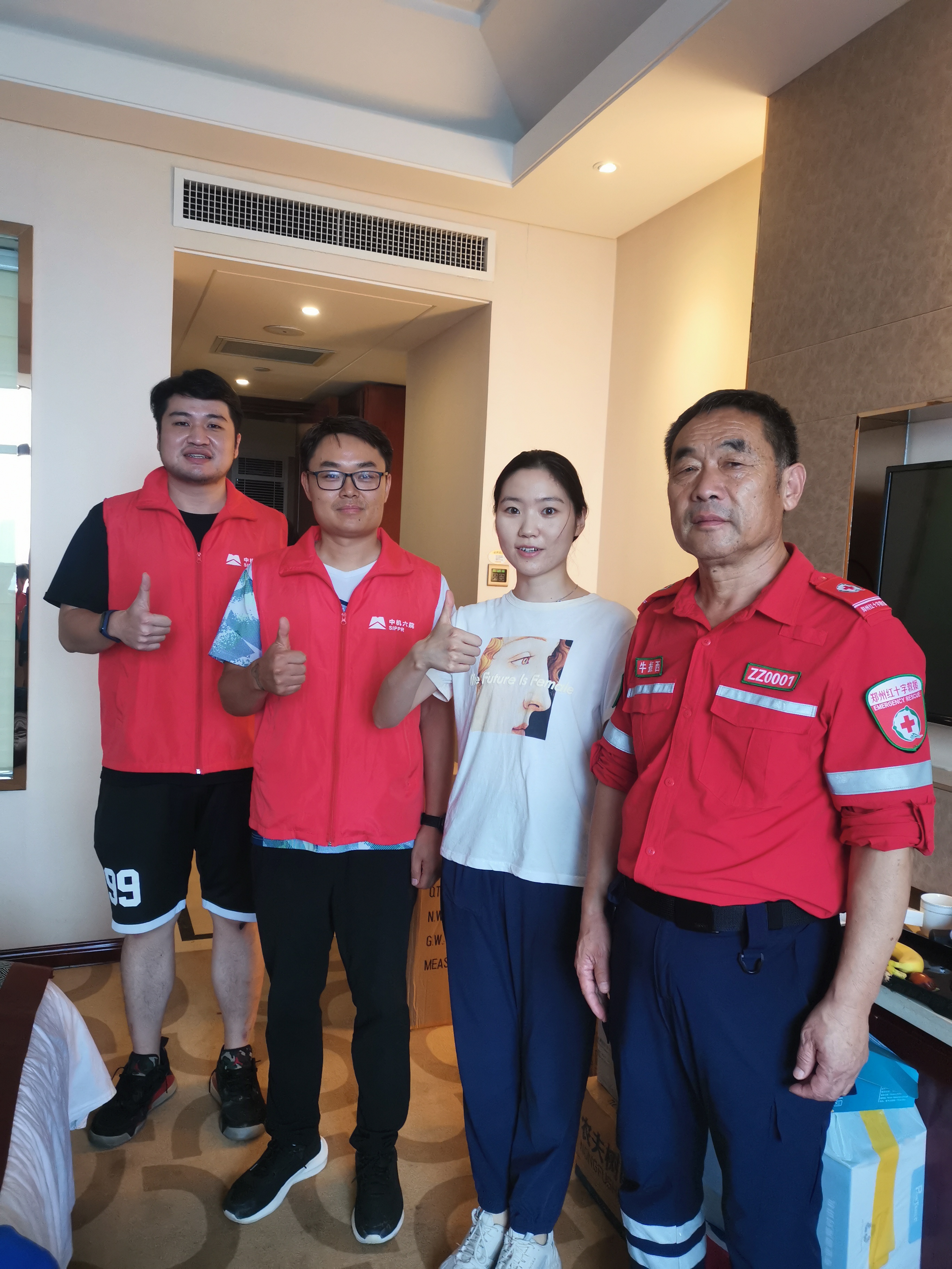 在得知鄭州市紅十字會(huì)水上救援隊(duì)在開展防汛救災(zāi)工作中急需對講機(jī)和充電寶等物資,公司工會(huì)張松林等人立即前往鄭州市科技廣場等地籌措相關(guān)物品,經(jīng)與科技廣場愛心商戶等多方協(xié)調(diào),緊急籌措50部對講機(jī),20臺充電寶等救援物品,并迅速送到救援人員手中,為救援工作提供支持。(黨委工作部、公司工會(huì)、第一工程院、第四工程院)